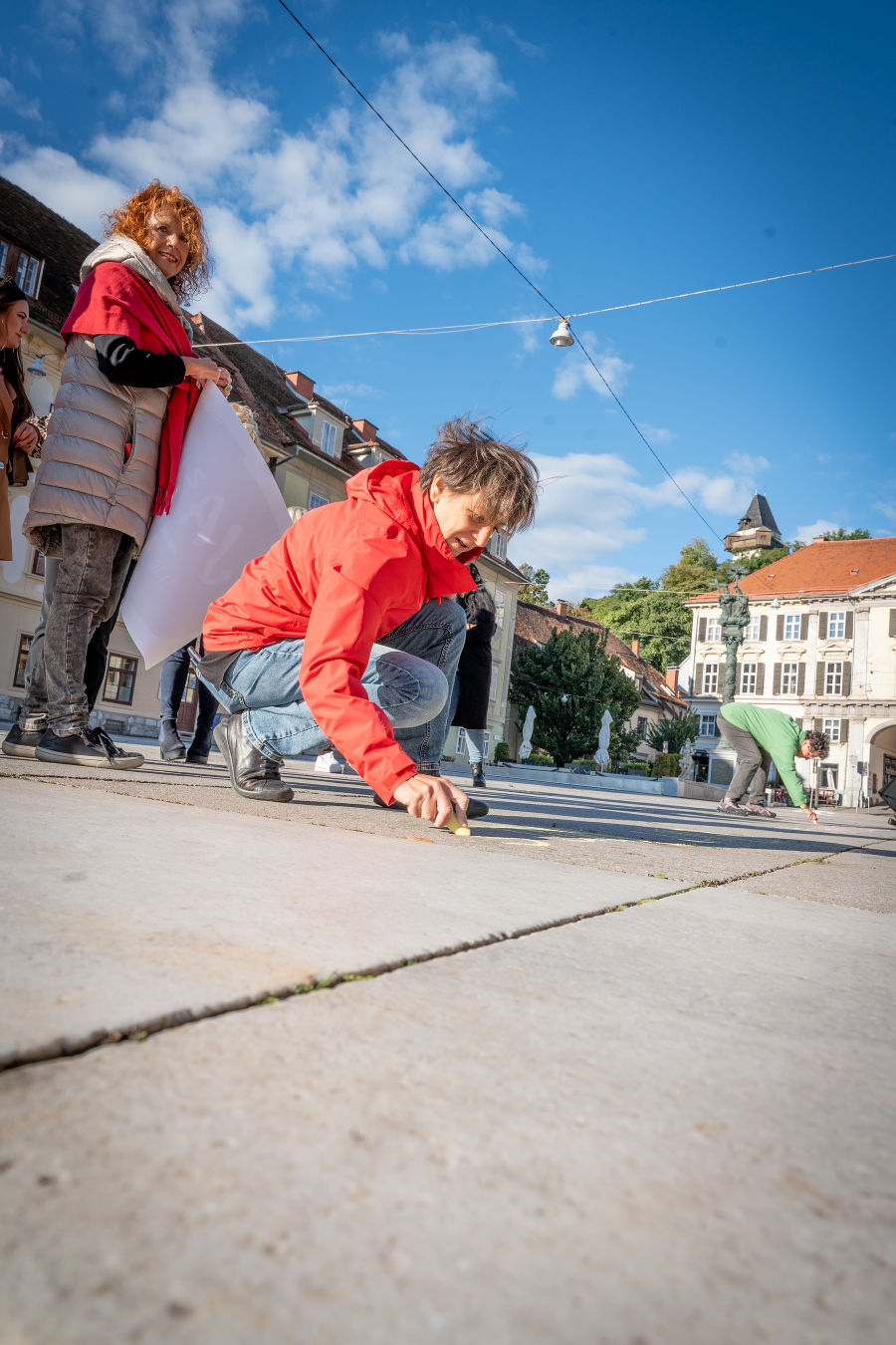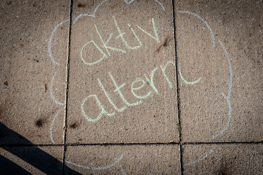 ... zum Beispiel mit generationenübergreifenden Aktionen und Veranstaltungen oder aber auch mit Kreide-Botschaften auf Gehwegen, Straßen und Plätzen: Kreide schnappen, Botschaft schreiben, Foto machen!