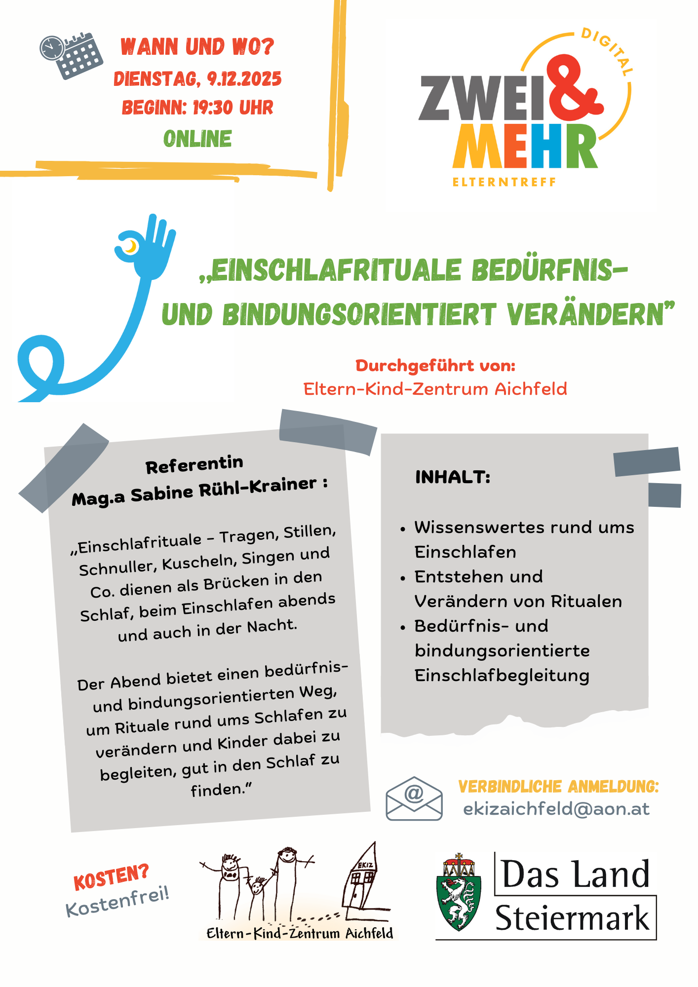 ZWEI & MEHR-Elterntreff online: "Einschlafrituale bedürfnis- und bindungsorientiert verändern"