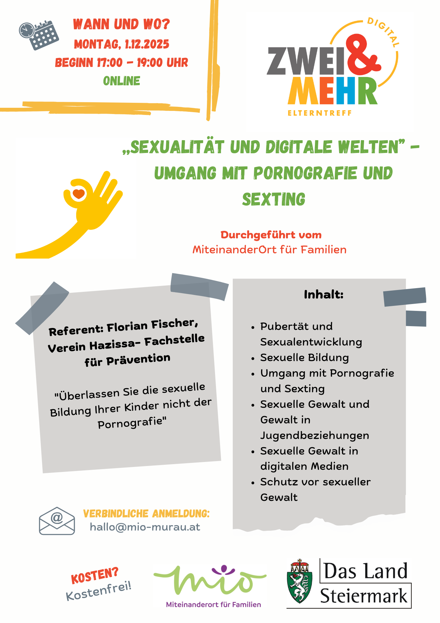 ZWEI & MEHR-Elterntreff online: "Sexualität und digitale Welten" - Umgang mit Pornografie und Sexting