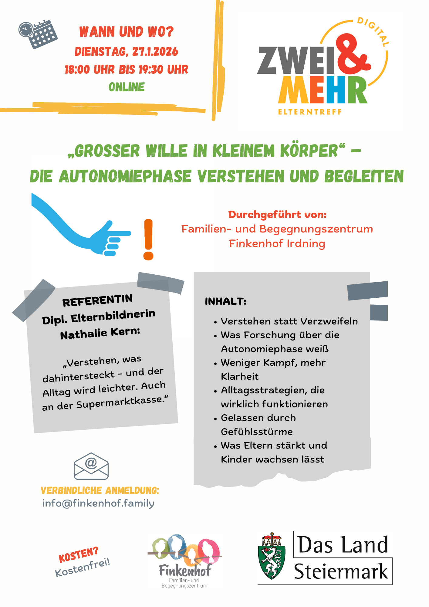 Bitte um verbindliche Anmeldung per Mail an info@finkenhof.family. Alle weiteren Details zur Online-Teilnahme werden per Mail übermittelt.