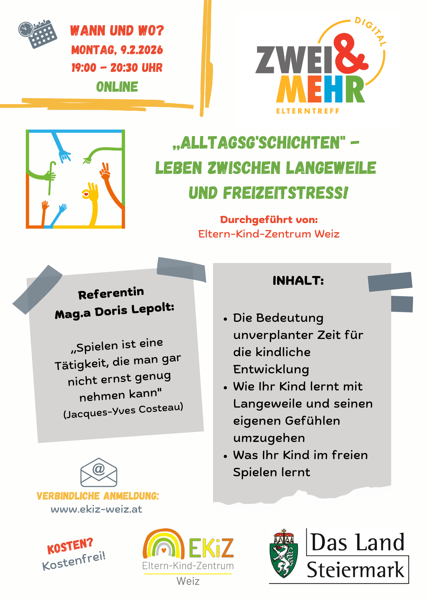 Bitte um verbindliche Anmeldung an office@ekiz-weiz.at, alle weiteren Details zur Online-Teilnahme werden per Mail übermittelt.
