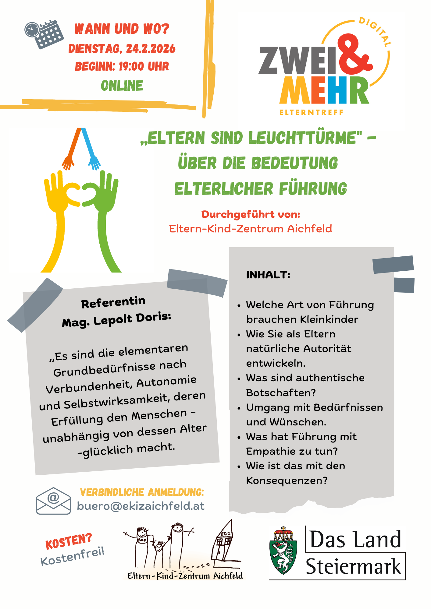 Um verbindliche Anmeldung an die Mail-Adresse buero@ekizaichfeld.at wird ersucht, alle weiteren Details zur Online-Teilnahme werden per Mail übermittelt.