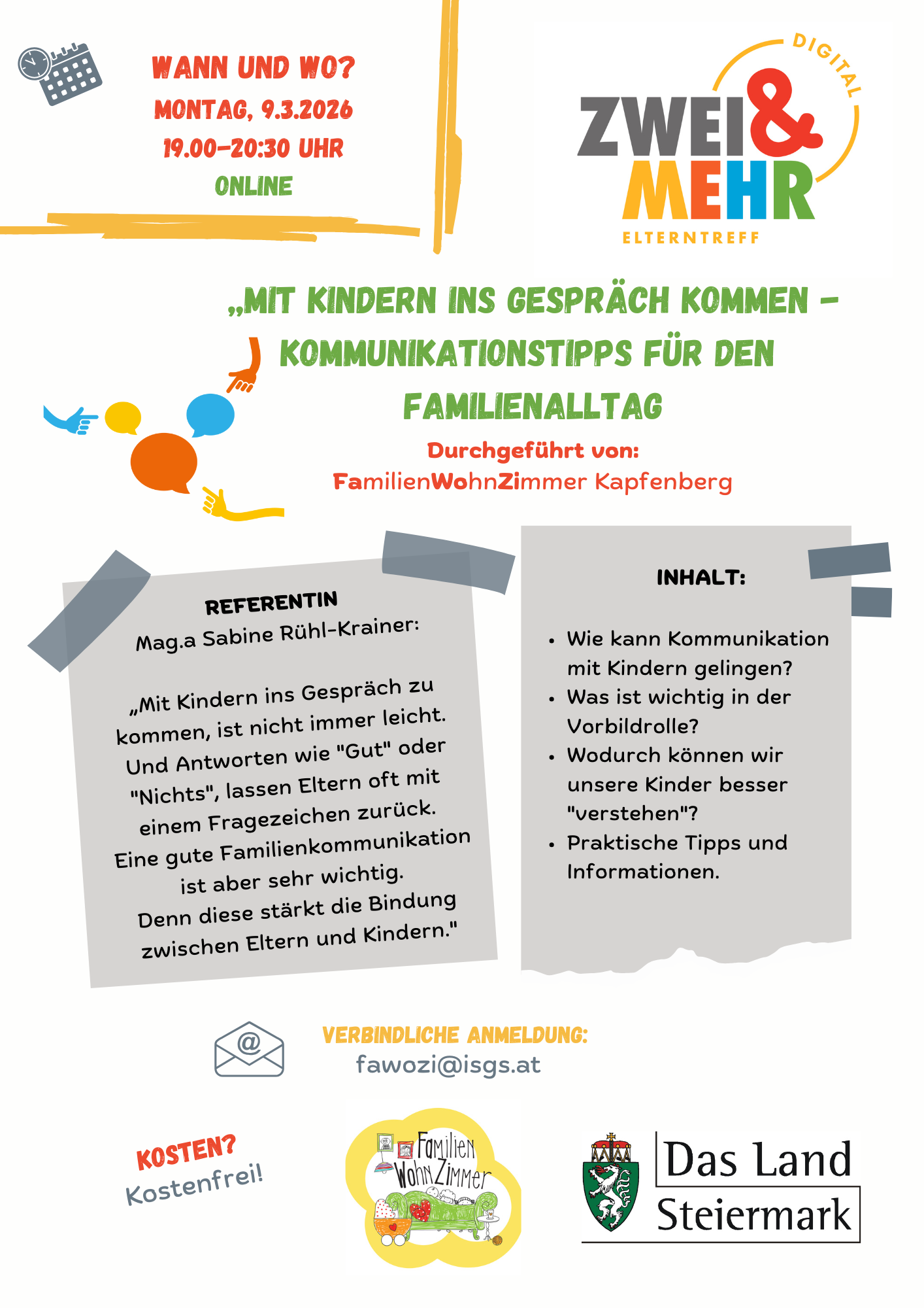 Bitte um um verbindliche Anmeldung per Mail an fawozi@isgs.at, alle Informationen zur Online-Teilnahme werden per Mail übermittelt.