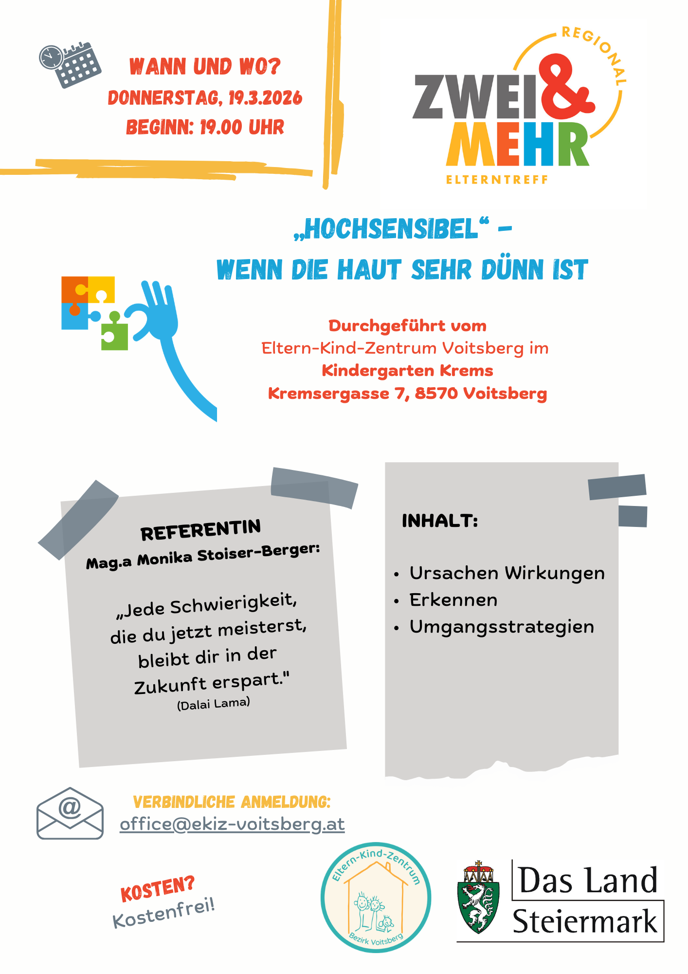 ZWEI & MEHR-Elterntreff im Kindergarten Krems: „Hochsensibel“ - Wenn die Haut sehr dünn ist