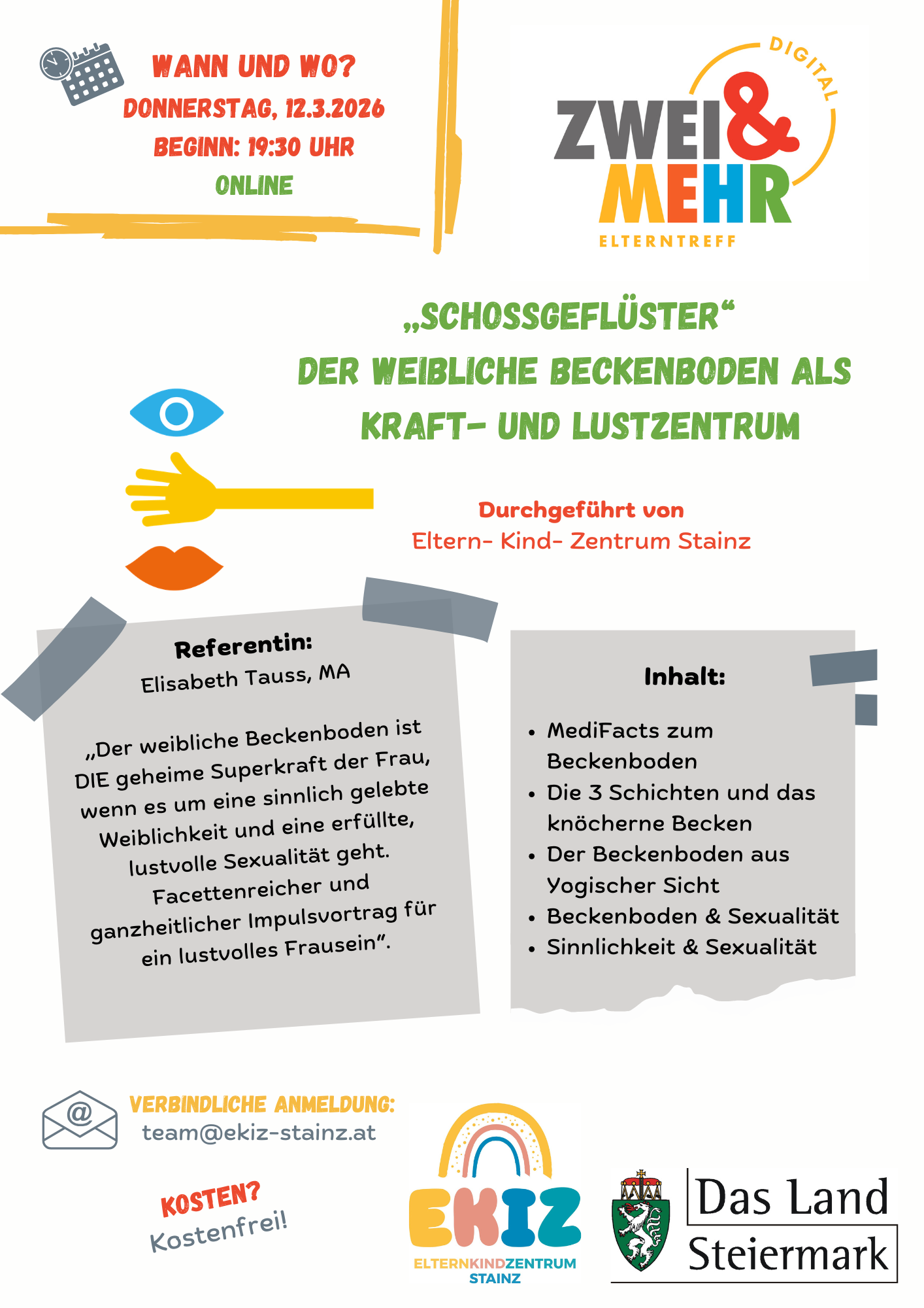 Bitte um verbindliche Anmeldung an team@ekiz-stainz.at, alle weiteren Details zur Online-Teilnahme werden per E-Mail übermittelt.