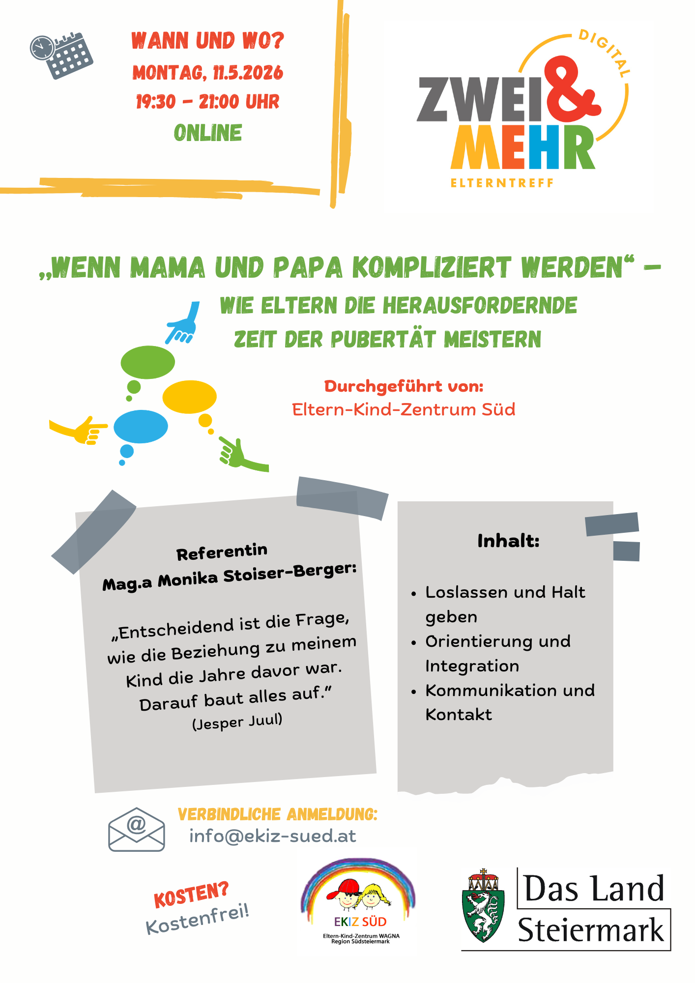 ZWEI & MEHR-Elterntreff online: „Wenn Mama und Papa kompliziert werden“ – Wie Eltern die herausfordernde Zeit der Pubertät meistern .