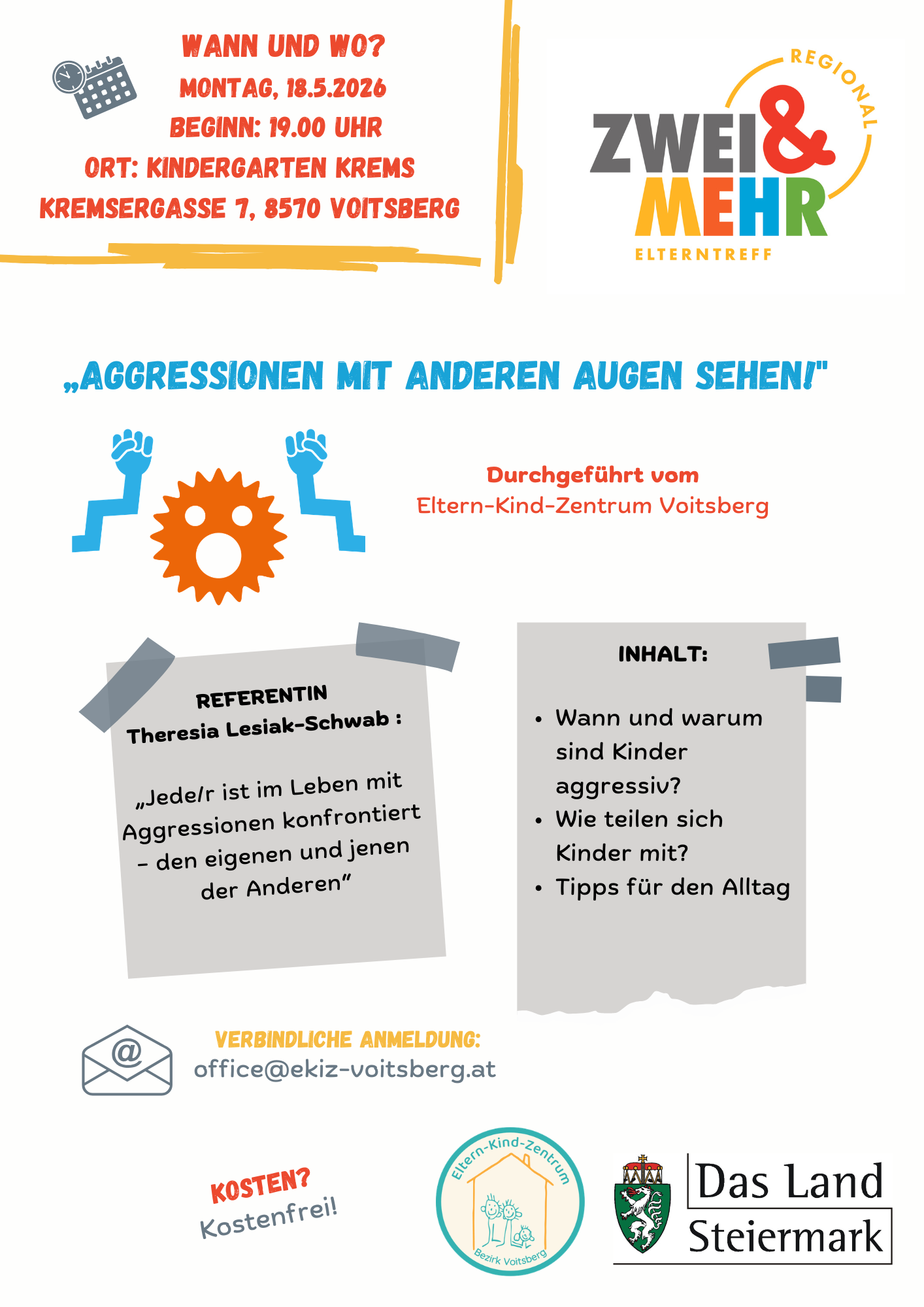 ZWEI & MEHR-Elterntreff im Kindergarten Krems: "Aggressionen mit anderen Augen sehen!"